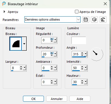 Effet filtre Graphics plus cross shadow par défaut tous à 50 sauf les 2 derniers à 128