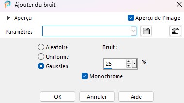 Sur le 1 Réglage ajouter/supprimer du bruit - ajouter du bruit à 25