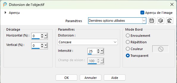 Effet de distorsion - Distorsion de l'objectif 0/0/25/concave/transparent