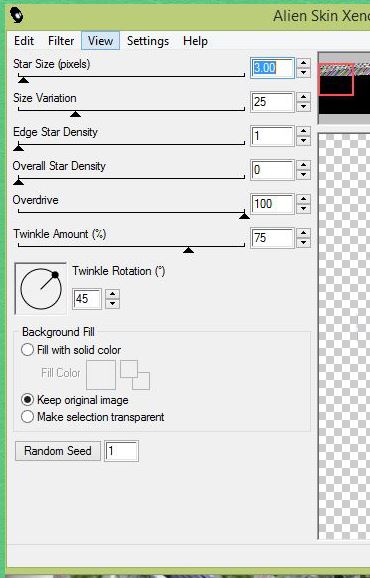 Dans setting cliquer sur glimmer Puis sur View 3/25/1/0/100 Random Seed 1: