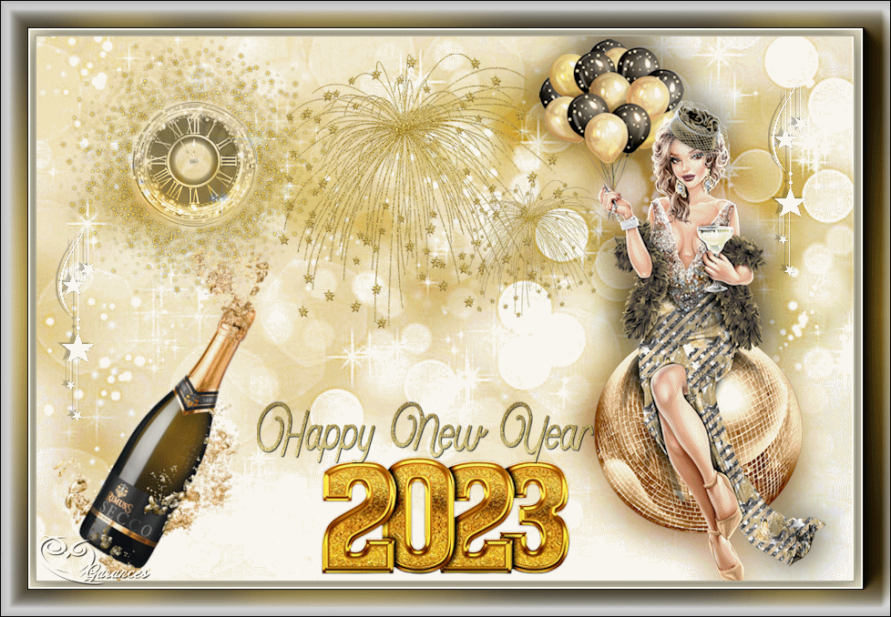 Placer les autres tubes et le texte happy new year Calque nouveau calque raster - image taille du support