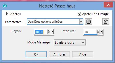 réglage netteté - netteté passe en haut