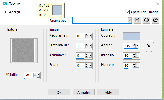 Effet de textures striure 50/0/1/0/315/50/30 couleur *bbcde3