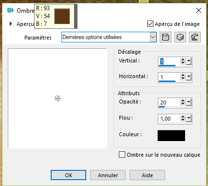 Sélection inverser effet ombre portée part défaut 10/10/50/5 refaire en négatif -10/-10/50/5