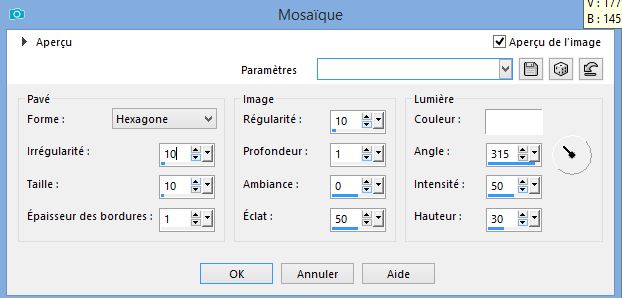 Sélectionner la bordure de 15 effet Graphics plus cross shadow par défaut 50 partout les 2 derniers à 128
