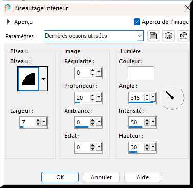 Effet 3 D biseautage intérieur 2 - largeur 7 - 0/20/0/0/315/50/30 comme précedemment