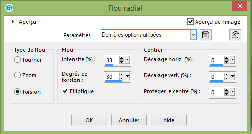 Réglage flou radial