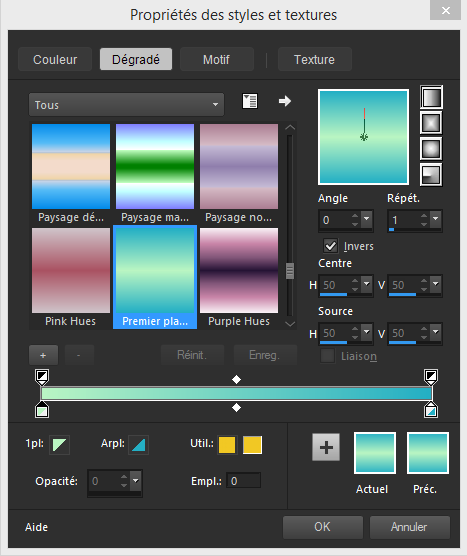 Préparer un dégradé linéaire angle 0 répétition 1