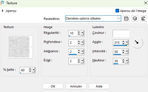 Effet filtre Graphics plus cross shadow par défaut tous à 50 sauf les 2 derniers à 128
