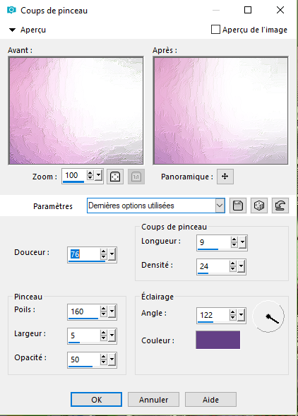 Effet art média coup de pinceau avec votre couleur foncé ici #673d89