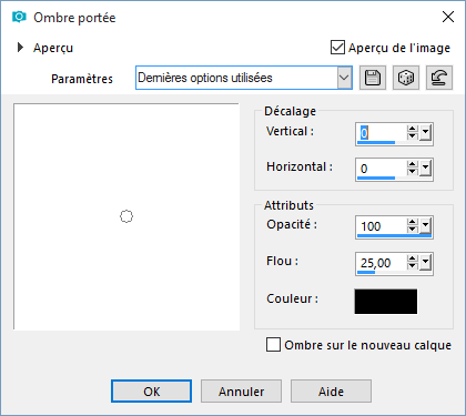 Effets/Effets 3D/Ombre portée comme précédemment (0/0/100/25)