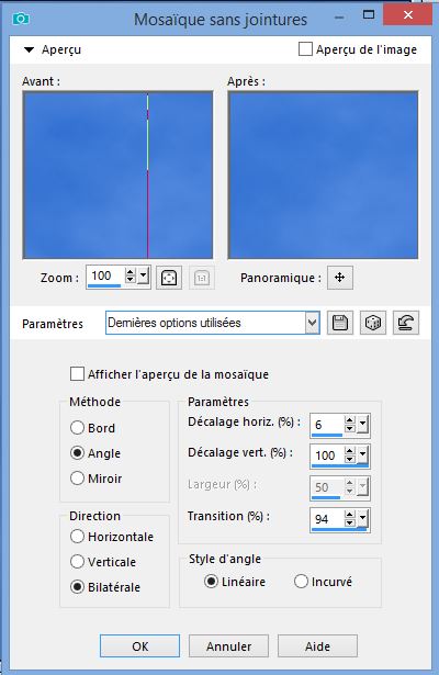 Sélectionner la bordure de 15 effet Graphics plus cross shadow par défaut 50 partout les 2 derniers à 128