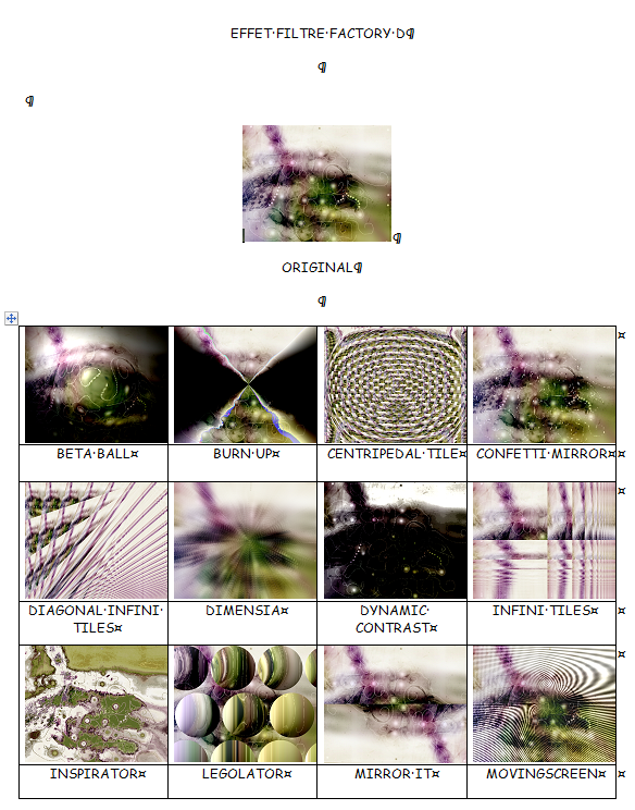 Les divers EFFETS FILTRE FACTORY D