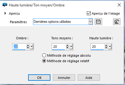 faire réglage Haute lumière/ton moyen/ombre